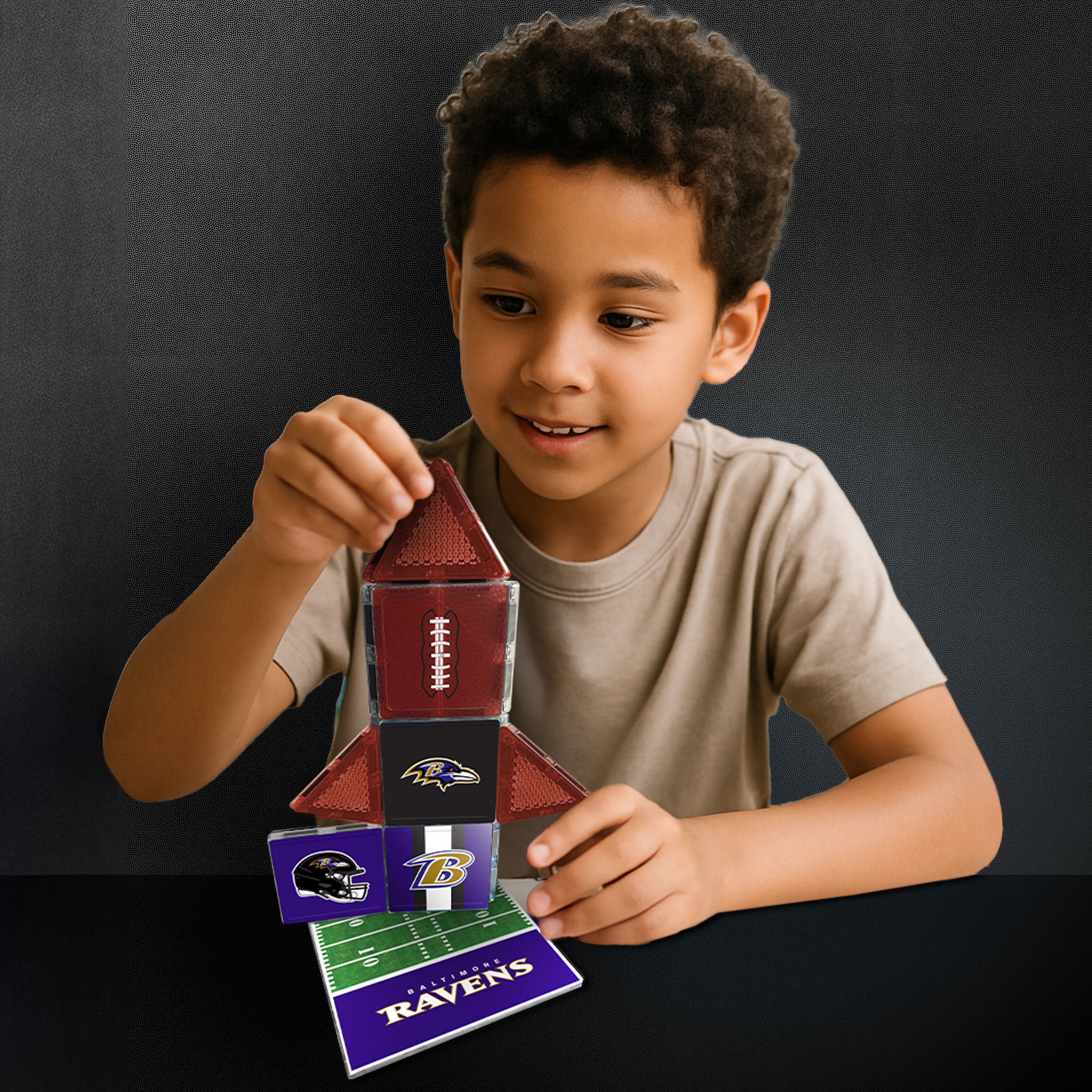 With 10 squares, 1 large square, and 6 equilateral triangles, you can create mini helmets, stadium scenes, football designs, player numbers, and custom Ravens-inspired builds. These sturdy magnetic tiles snap together effortlessly, making them perfect for game day fun, tailgates, office desks, fan caves, and hands-on play for fans of all ages.