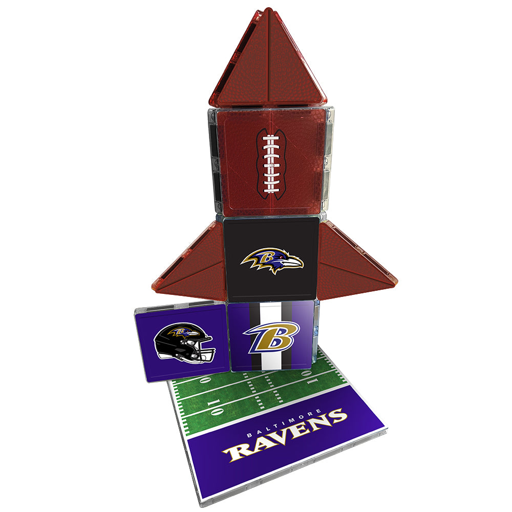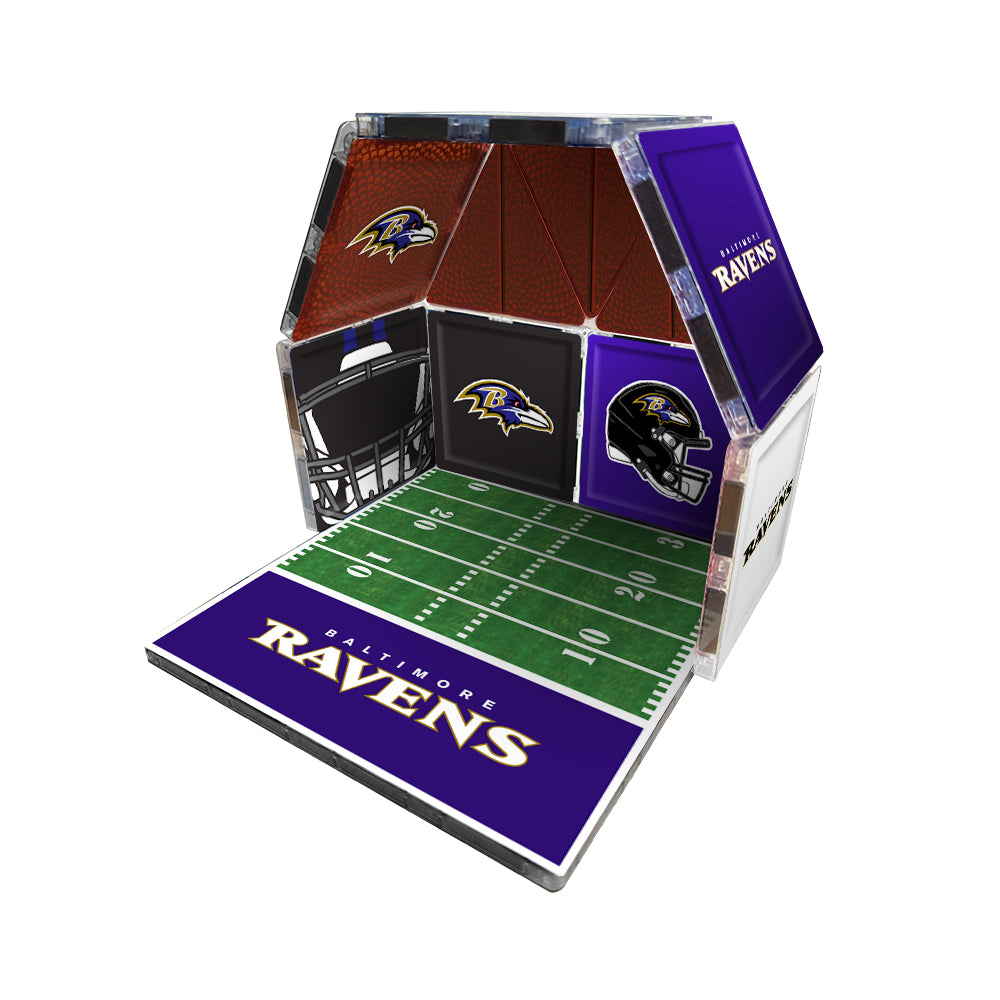 Flock together and show your purple pride with the officially licensed Baltimore Ravens Fan-Tiles 17-Piece Magnetic Building Set! Designed for fans ages 3 to 99, this collectible Baltimore Ravens magnetic tiles set features authentic Ravens logos, colors, and artwork so you can build, display, and celebrate your team in a bold new way.
