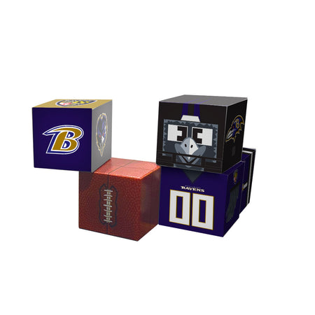 - Includes a Ravens logo cube and a football cube