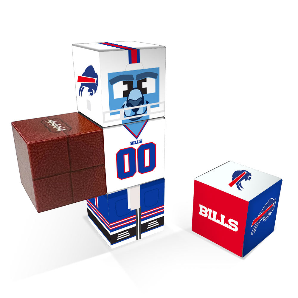 - Includes a Bills logo cube and a football cube