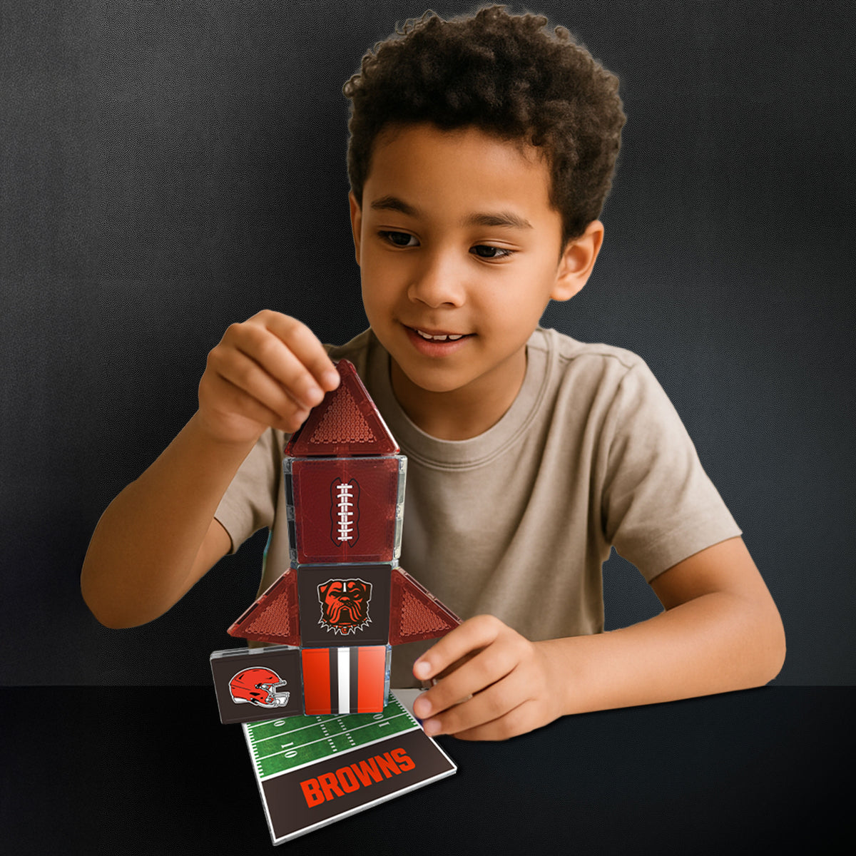 Dawg Pound pride starts here with the officially licensed Cleveland Browns Fan-Tiles 17-Piece Magnetic Building Set! Designed for fans ages 3 to 99, this collectible Cleveland Browns magnetic tiles set features authentic Browns logos, colors, and artwork so you can build, display, and celebrate your team in a hands-on, creative way.