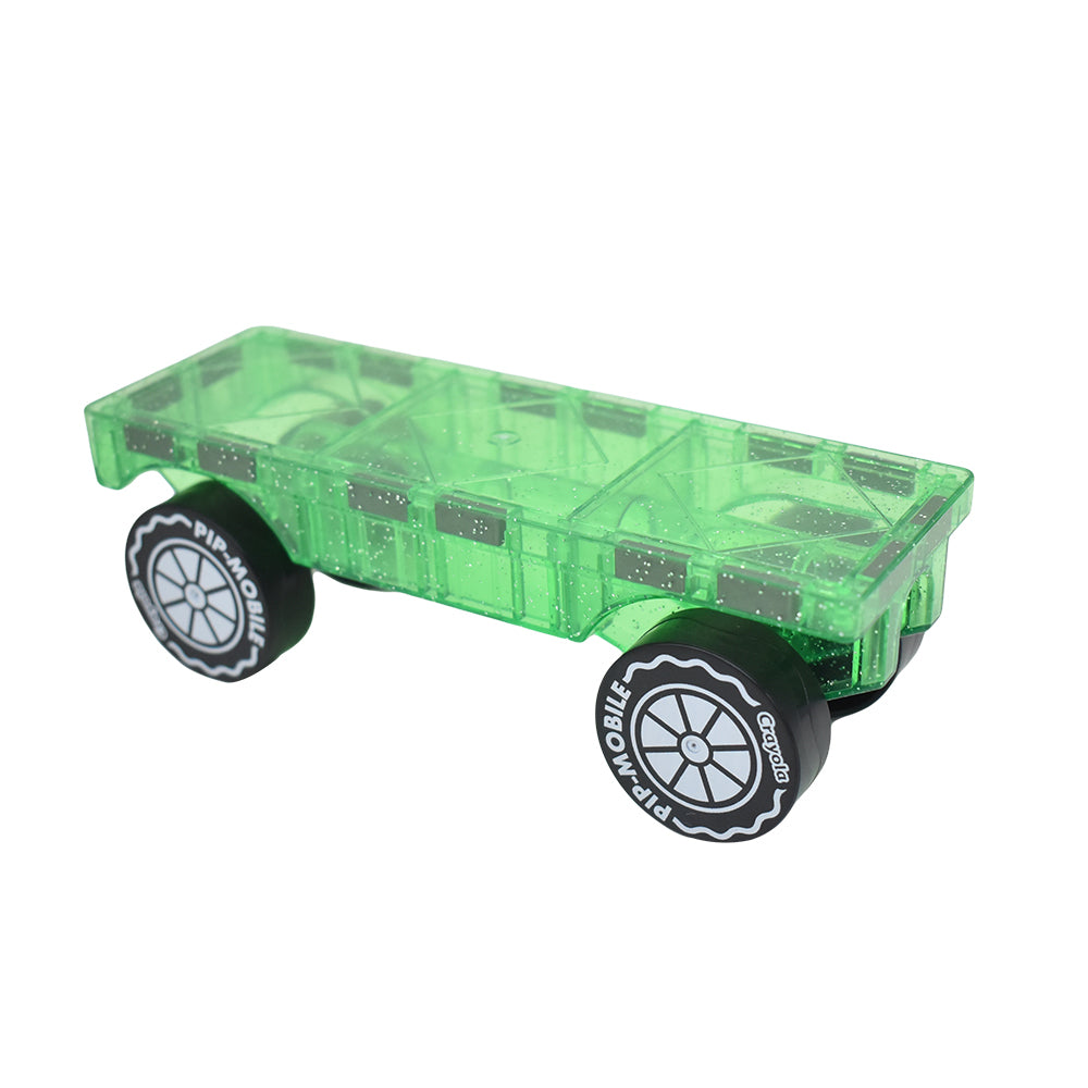 Spark creativity on the go with the Crayola Glitter PIP-Mobile Mini Magnetic Building Cars—a shimmering set of mini magnetic cars designed for creators ages 3 to 99. This dazzling 2-piece set features glittering Crayola shades Gritty Green and Blue Blazes, adding shimmer and shine to every imaginative adventure.