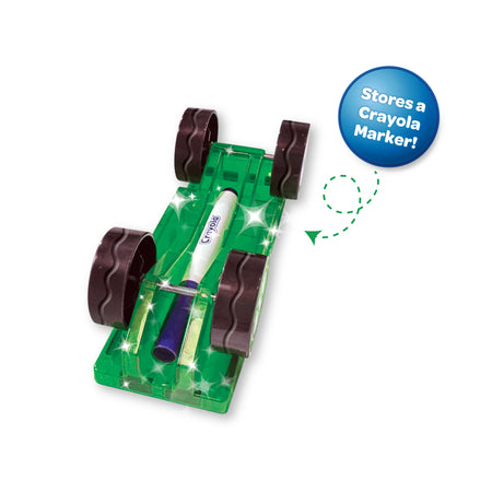 Each mini car is equipped with Crayola’s signature serpentine-belt wheels, which leave fun, artistic track patterns on suitable surfaces as kids roll, race, and explore. Flip each car over to reveal a clever bonus—built-in undercarriage storage for a Crayola marker (marker not included), making this a fun portable STEM toy for creative play anywhere.