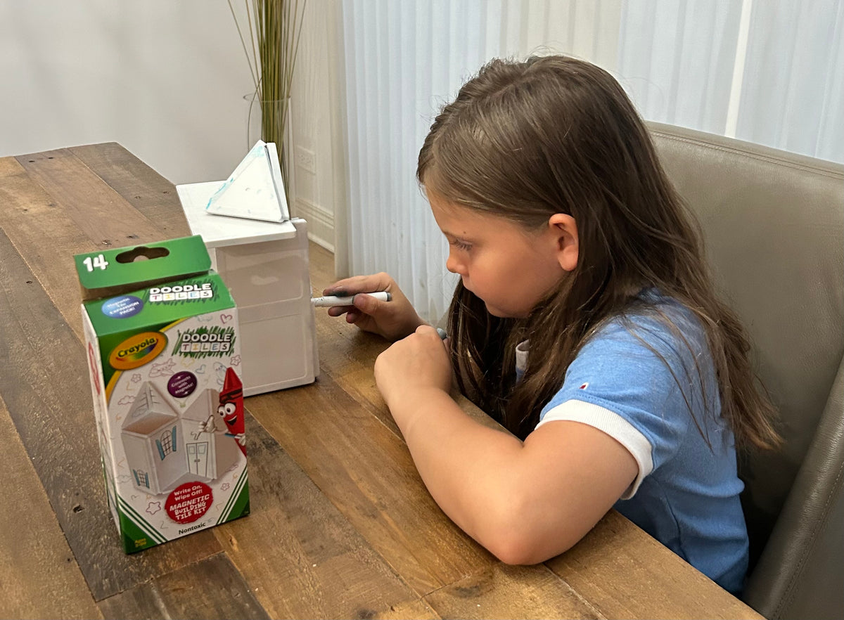 Spark creativity and imaginative play with the Crayola Doodle Tiles 14-Piece magnetic tile building set! Designed for creators ages 3 to 99, this compact yet versatile set brings together magnetic building fun and customizable doodle surfaces using reusable write-on/wipe-off magnetic tiles that kids can draw on, wipe clean, and redesign endlessly.