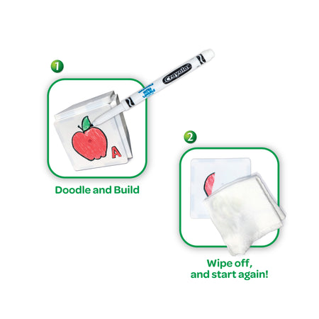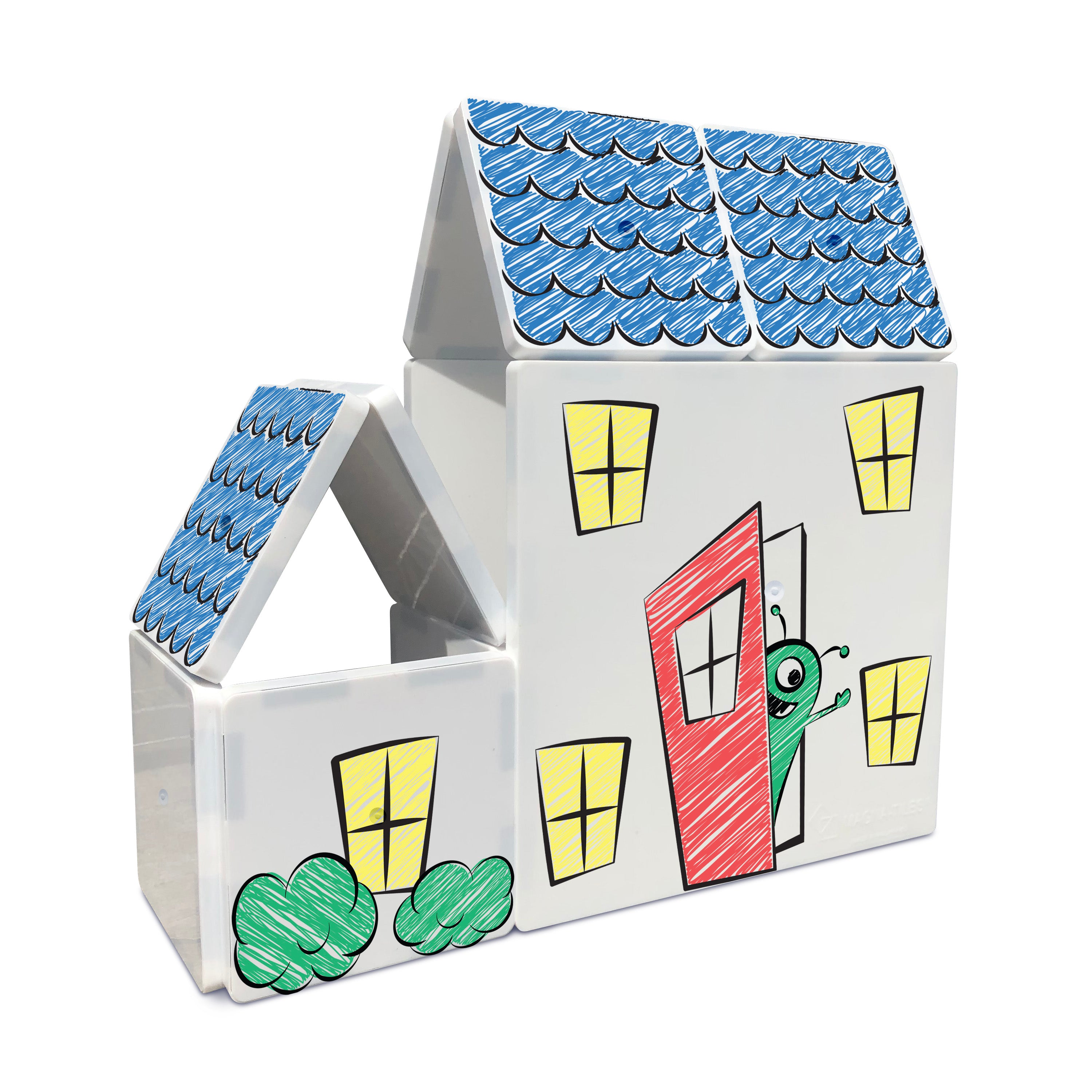 Kids can draw their own designs, build imaginative structures, and redesign again and again using 10 square tiles, 4 right triangles, 4 window frames with doodle inserts, 1 large square tile, and 5 Crayola write-on/wipe-off markers. From buildings and scenes to characters and patterns, every creation is uniquely theirs—and easily erasable for a fresh start, making it a fun educational magnetic toy for hands-on play.