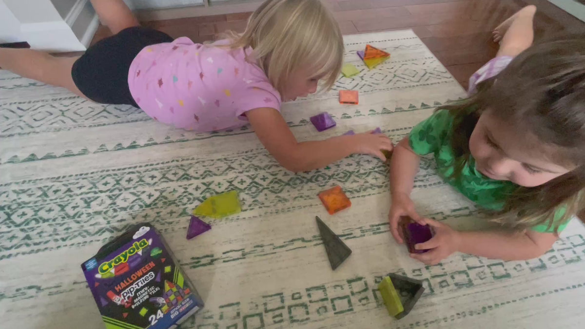Light up spooky season with the Crayola Halloween Glow Mini PIP-Tiles 24-Piece mini magnetic tile set! Designed for creators ages 3 to 99, this festive set features a hauntingly fun mix of purple, orange, smokey black, and glow-in-the-dark green tiles that bring Halloween magic to every build. Kids can create haunted houses, spooky creatures, glowing patterns, and imaginative structures that come alive in the dark.