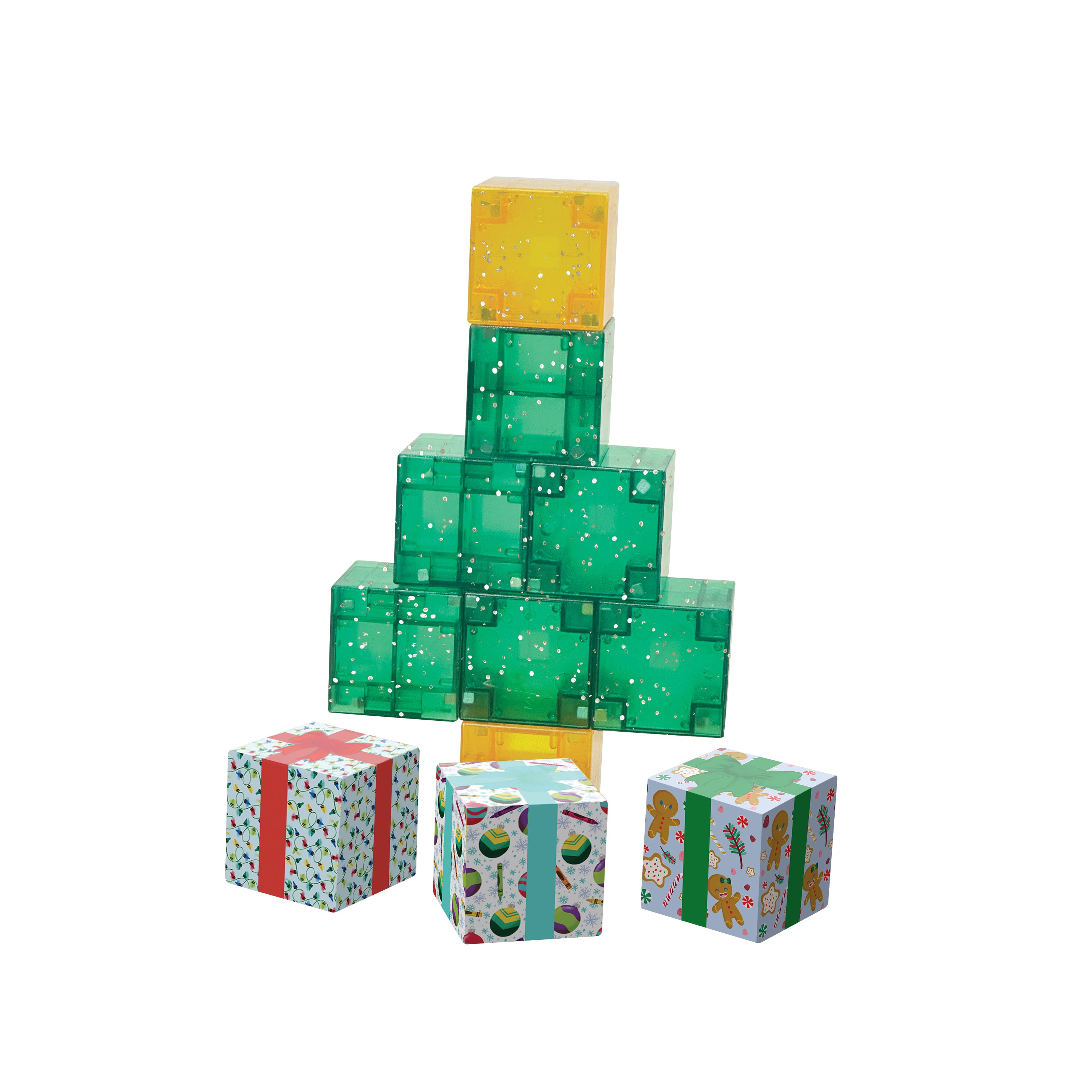 Kids and families can build shimmering towers, gift-stack displays, and holiday-inspired scenes that bring the magic of the season to life. These easy-to-connect magnetic cubes are perfect for open-ended building, storytelling, and creating festive centerpieces that can be rearranged again and again—making this set a fun holiday gift for kids and a festive holiday STEM toy for seasonal play.