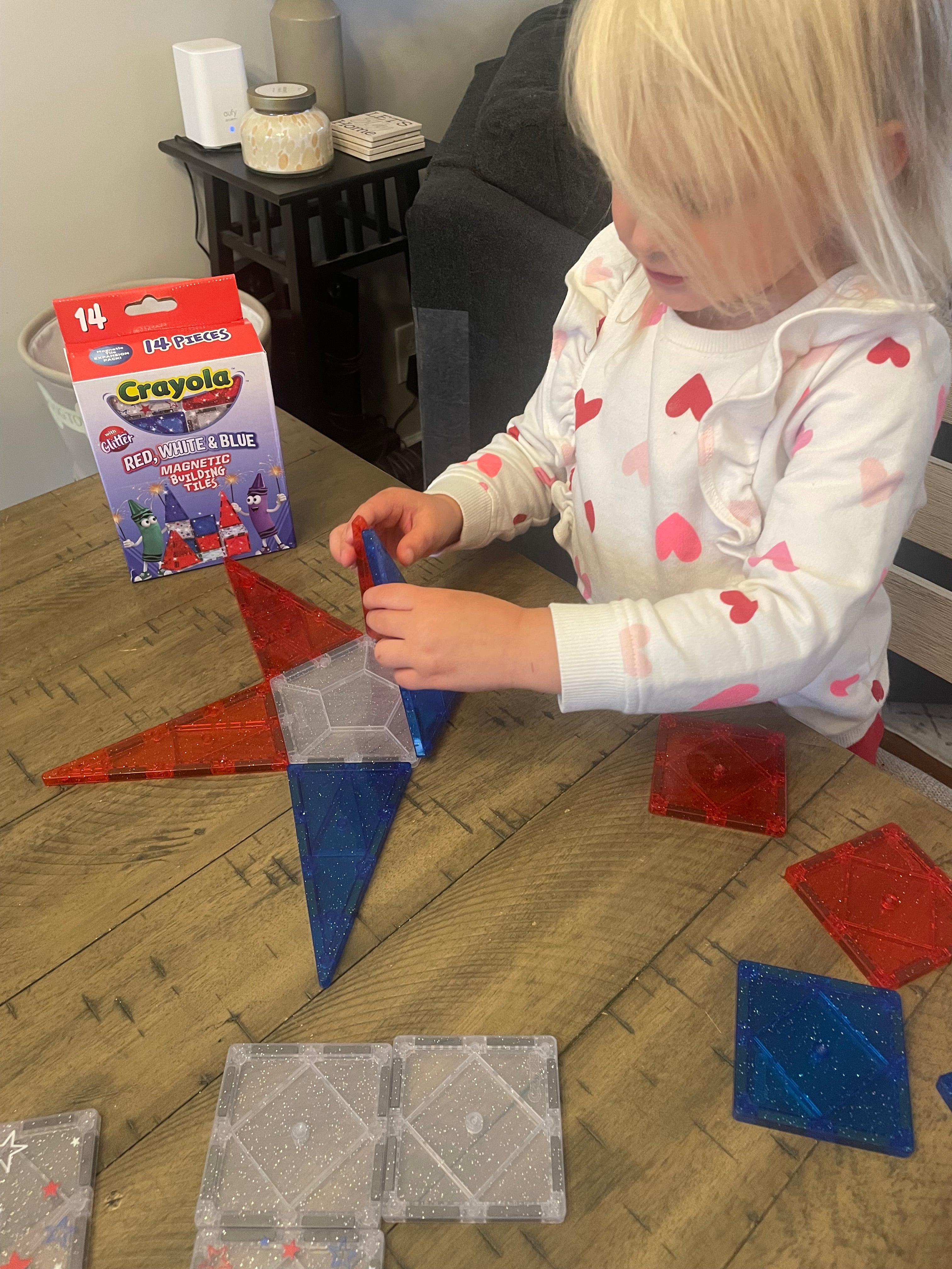 Build bright, build bold, and let creativity shine with this patriotic Crayola Glitter Tile Set—a sparkling favorite for creators of every age!