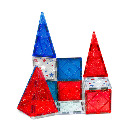 - 14 Red, White & Blue Glitter Magnetic Tiles