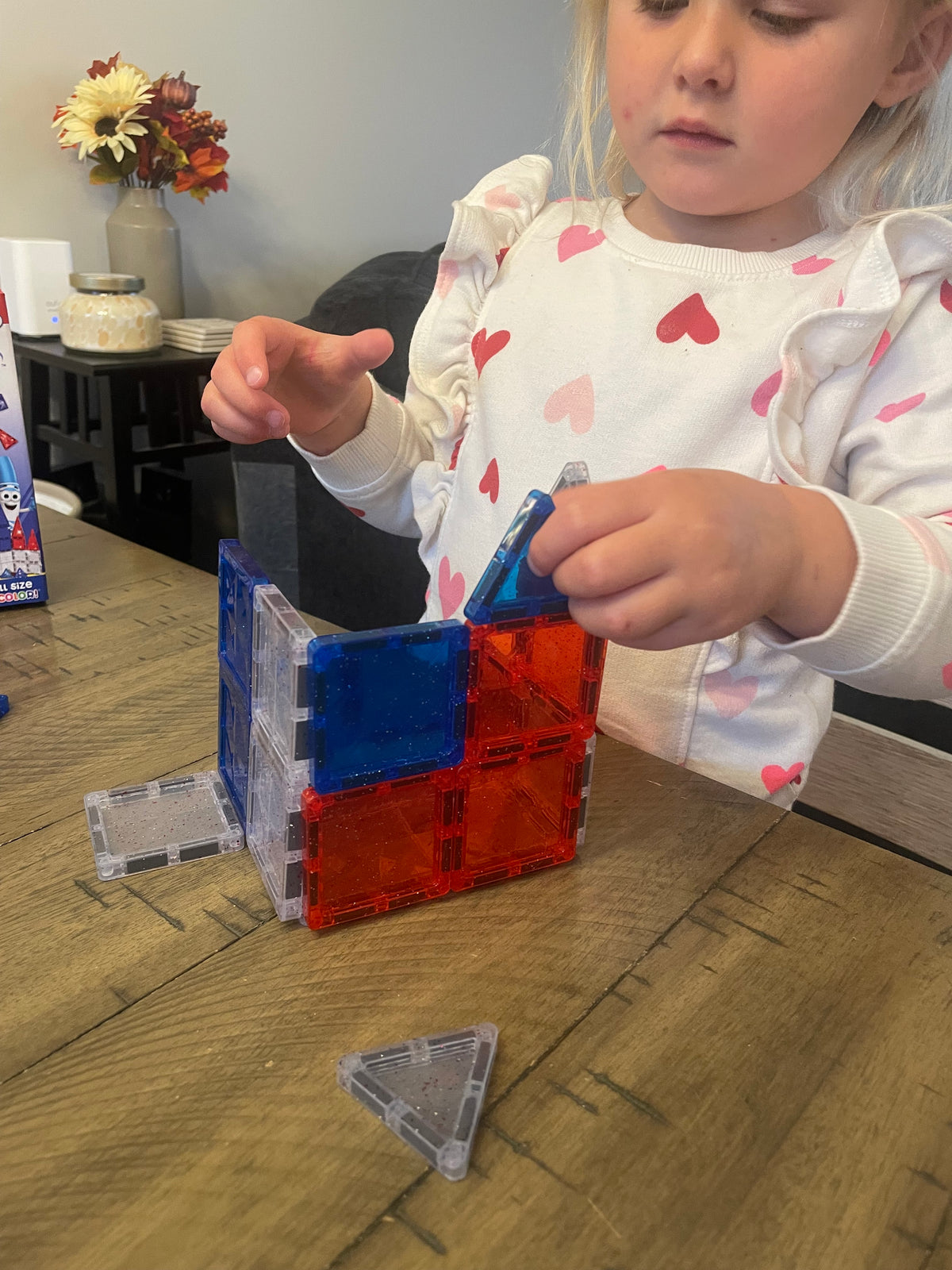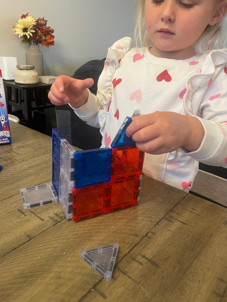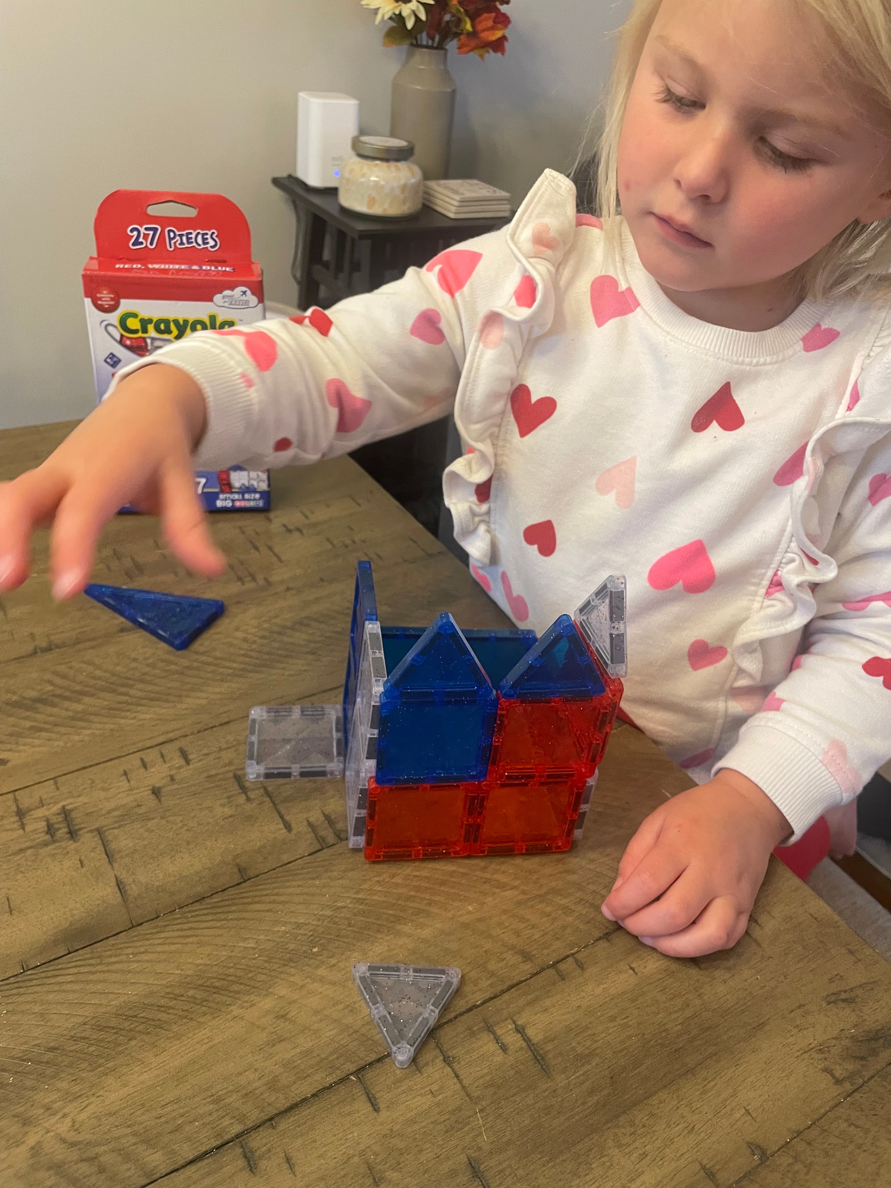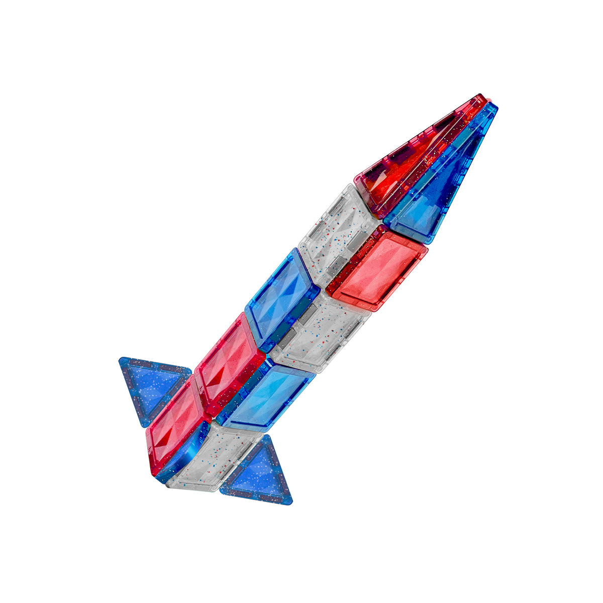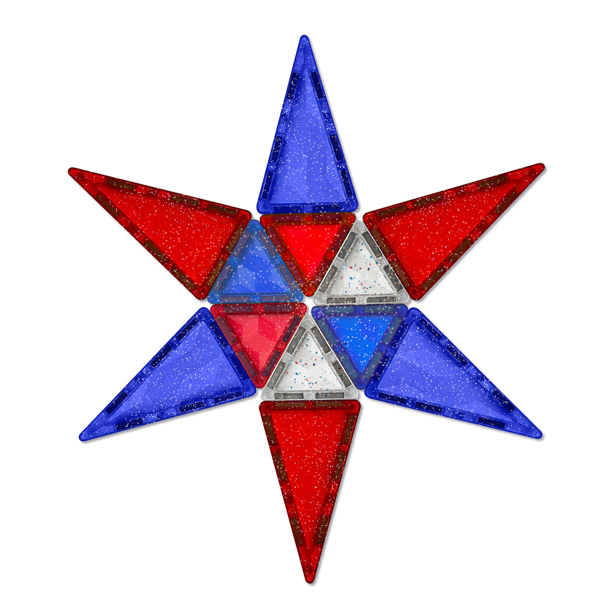 With a versatile assortment of 14 mini square tiles, 6 mini equilateral triangles, 6 mini isosceles triangles, and 1 large mini square tile, kids and families can build stars, towers, patterns, and patriotic creations that shine from every angle. Each tile connects easily and encourages open-ended building, imaginative play, and hands-on learning—plus it’s a fun travel-friendly magnetic toy for on-the-go creativity.