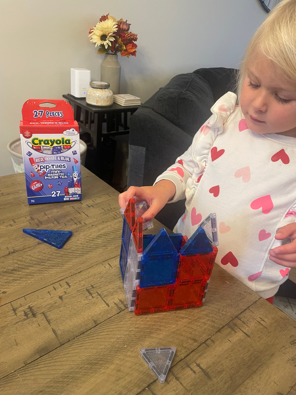 Build bold, build bright, and celebrate creativity with this patriotic Crayola Glitter Mini PIP-Tile set—a sparkling favorite for creators of every age!
