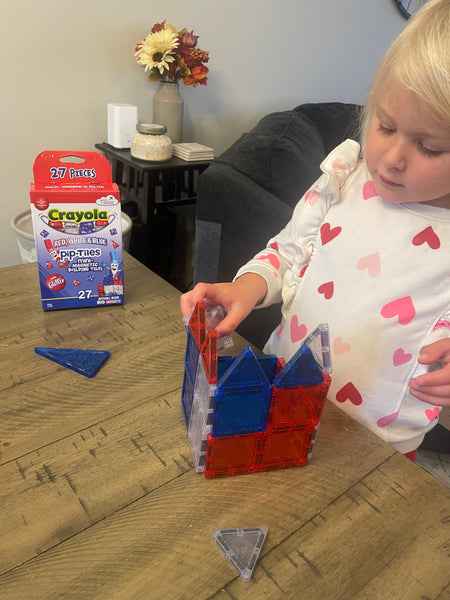 Crayola® Red, White & Blue Glitter Mini PIP-Tiles 27-Piece Magnetic Building Set