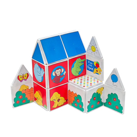 With 18 square tiles and 6 equilateral triangles, kids can build scenes inspired by Spot’s world, stack colorful structures, and create imaginative story moments featuring the beloved yellow puppy. Each tile connects easily, encouraging open-ended play, storytelling, and hands-on learning with these educational magnetic tiles.