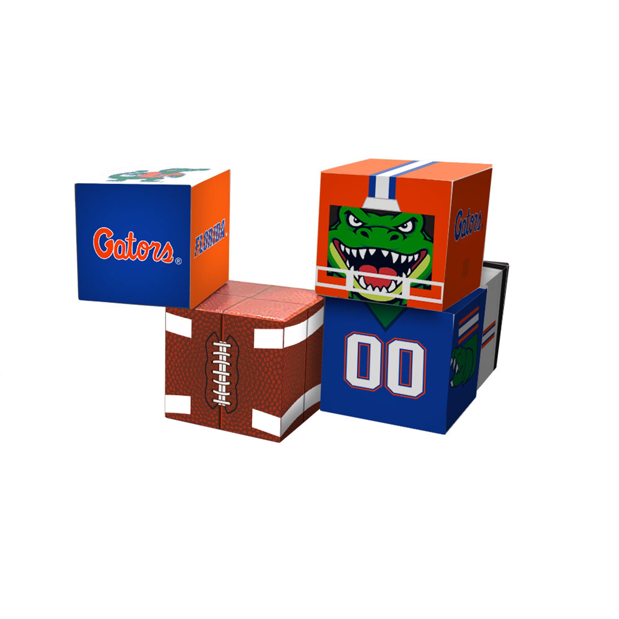Crafted from 5 magnetic cubes total, this QuBee™ features a 3-cube-tall character figure styled in the Gators’ iconic home jersey design. The set also includes 2 accessory cubes—one detailed team logo cube and one football cube—perfect for stacking, posing, and building your own game-day display.