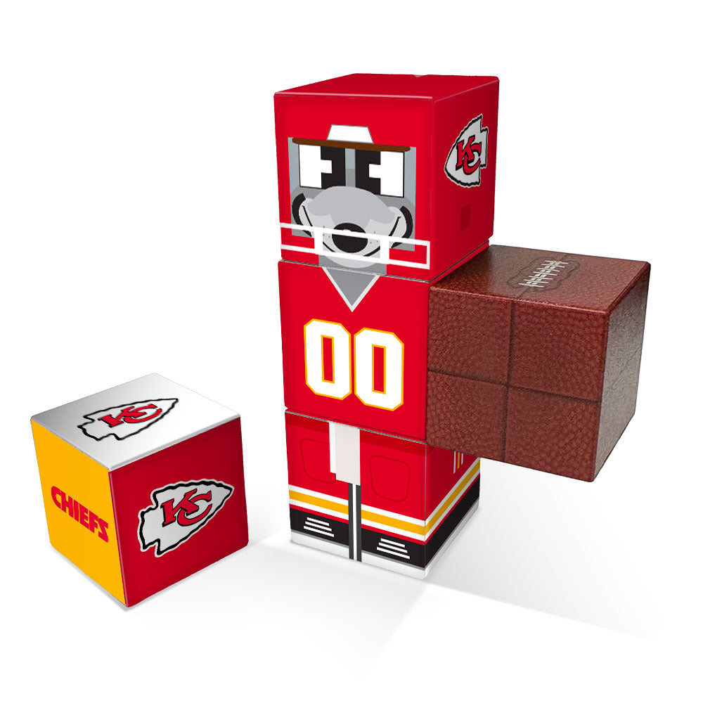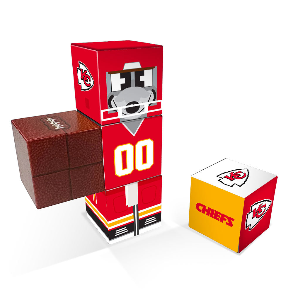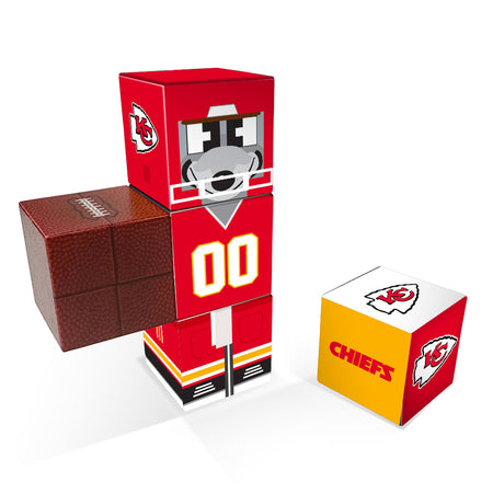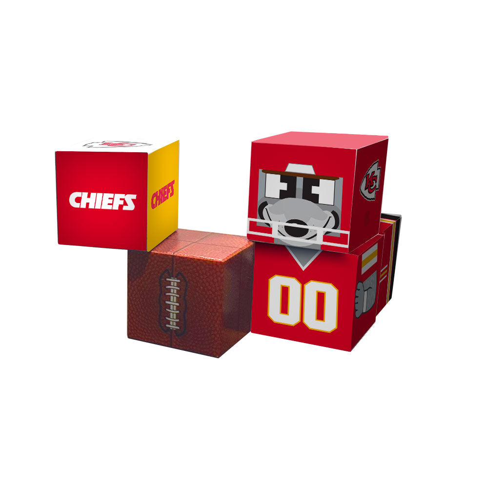 - Includes a Chiefs logo cube and a football cube