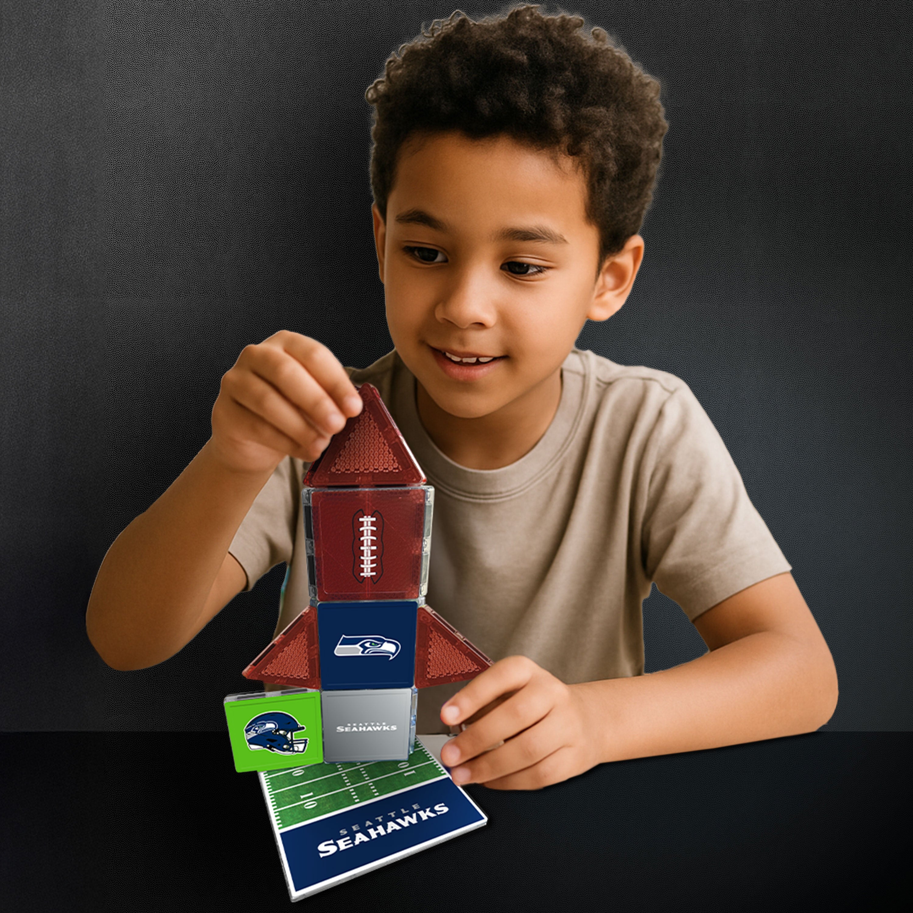 With 10 squares, 1 large square, and 6 equilateral triangles, fans can create mini helmets, stadium scenes, football icons, player numbers, and Seahawks-inspired designs. These durable magnetic tiles snap together effortlessly, making them perfect for game day excitement, office desks, tailgates, fan caves, and hands-on creative play for fans of all ages.